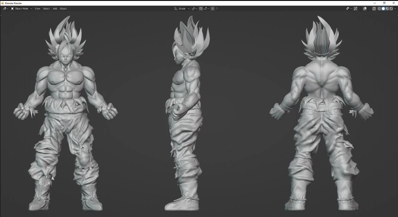 3D sculpted fanart of Goku from Dragon Ball Z Done in Bledner rendered with Cycles some post processing using GIMP