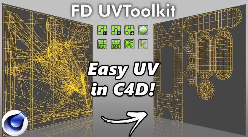 C4D插件 FD UVToolkit 1.1 – 三步快速展UV,让模型展UV变得轻松