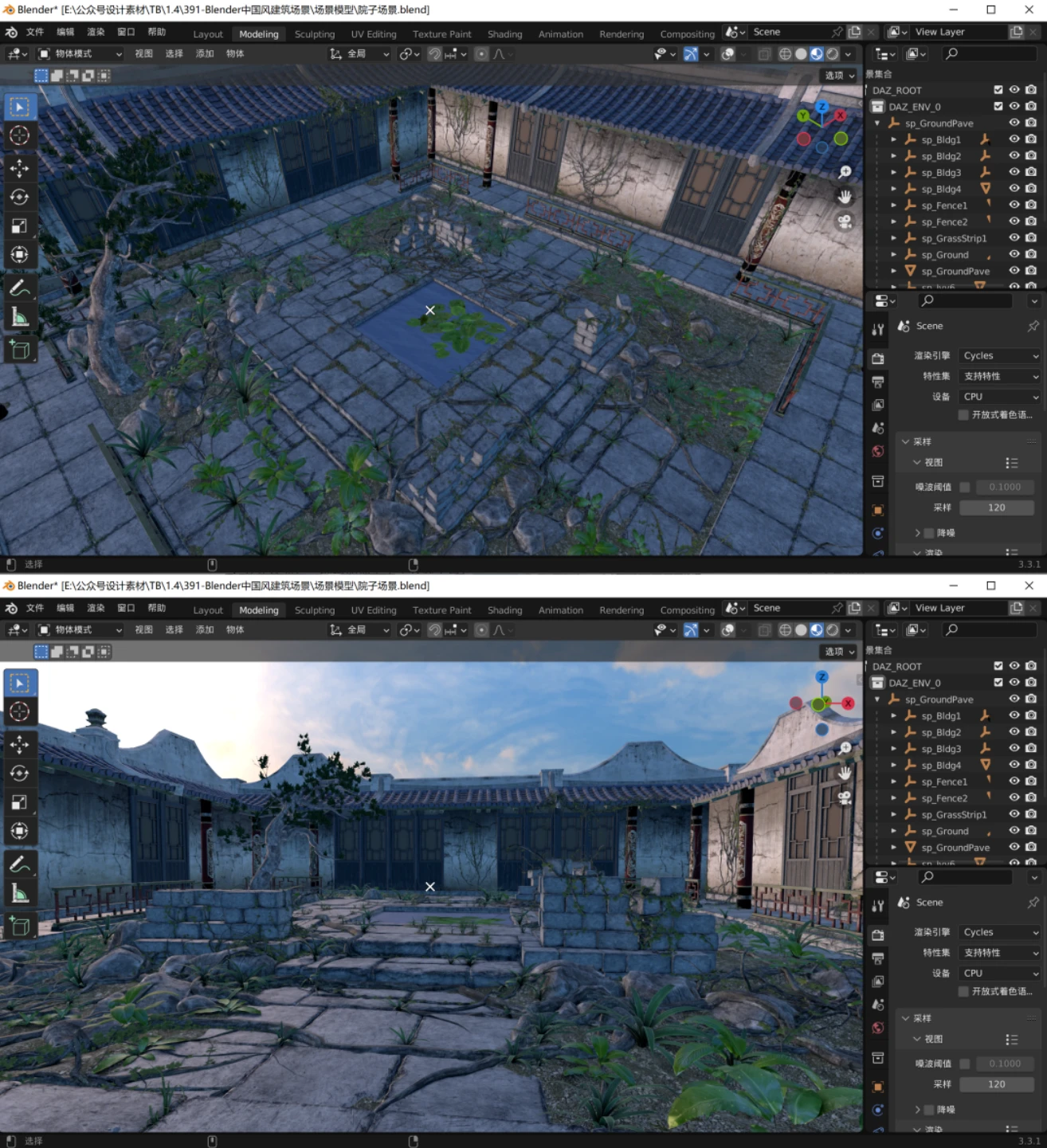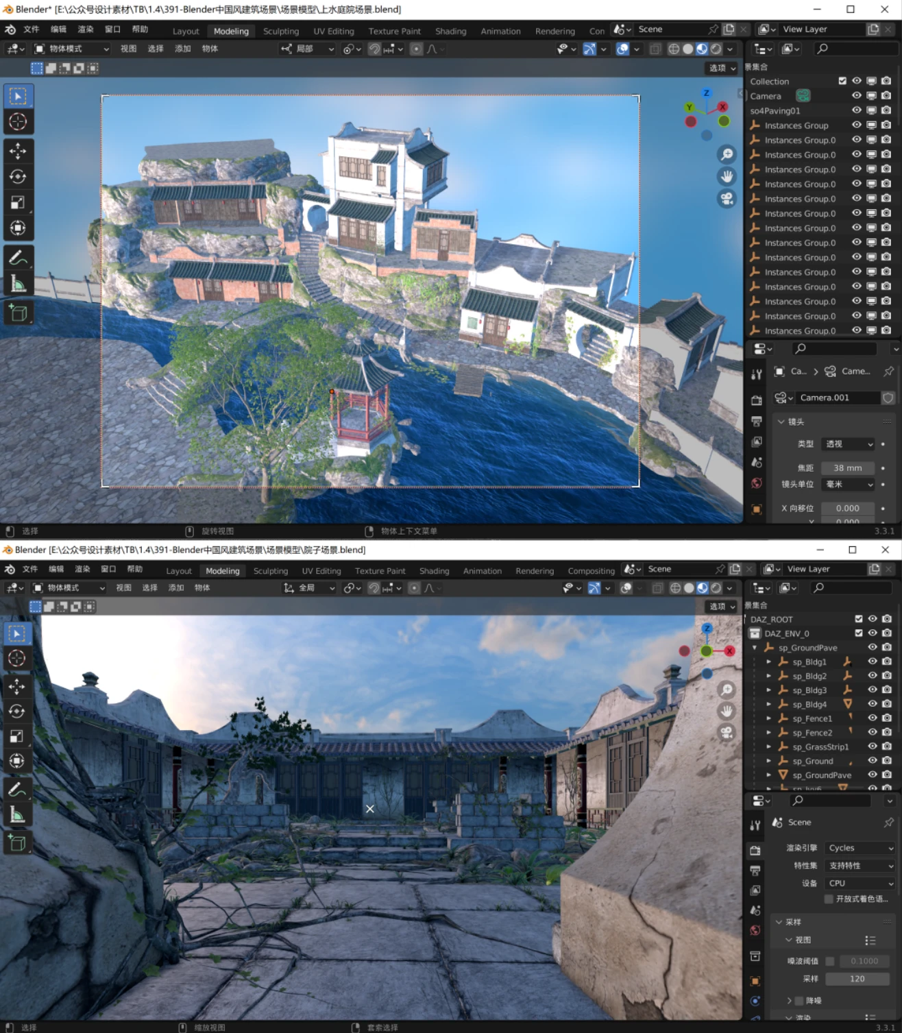 今天给大家分享2套粉丝提供的绝美中国风bledner场景模型,真的非常棒!