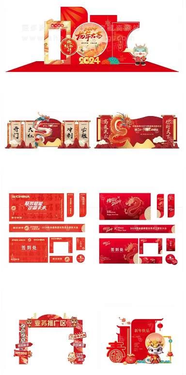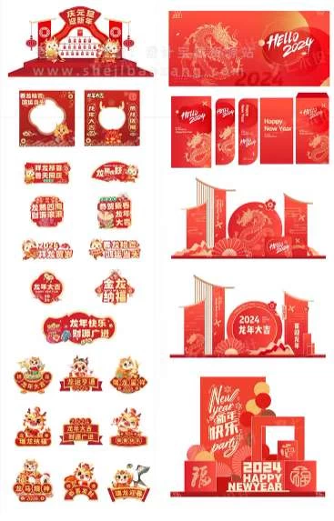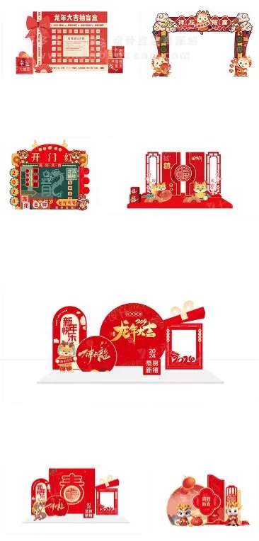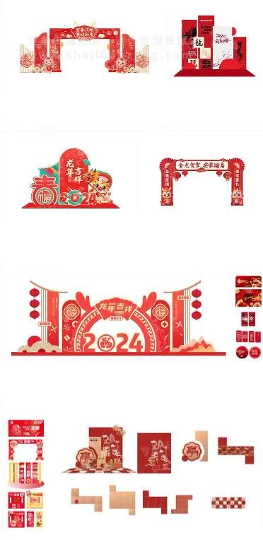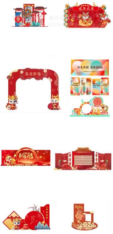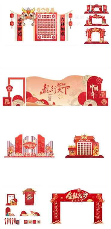 这套2024龙年新年春节元旦美陈物料龙门架拍照框周边设计Ai源文件是您不容错过的设计宝藏。赶快行动起来,用这套素材为您的节日增添一抹亮色吧!