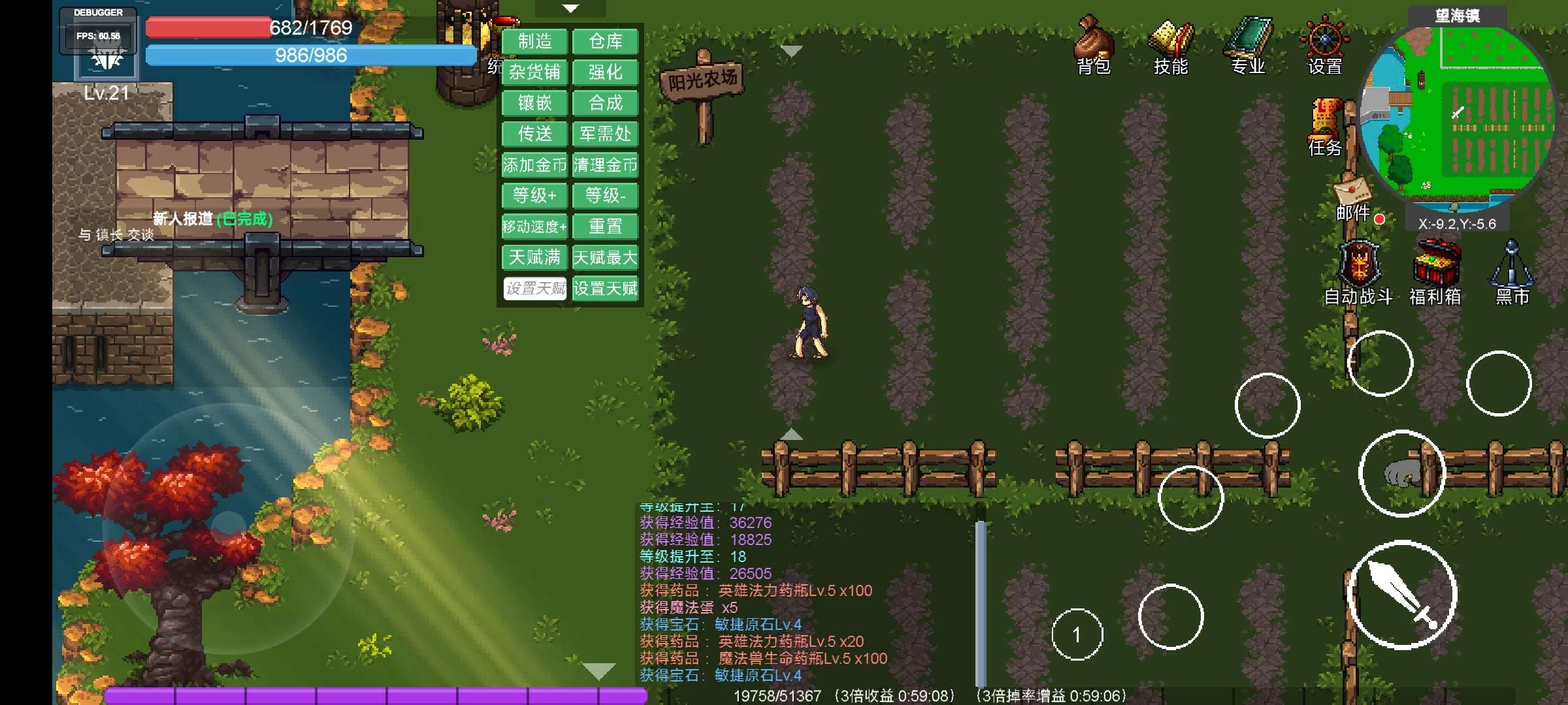 功能: 1.解锁游戏Debug菜单(再次重申,在左上角血条旁边,有一个往下的图标,点击就会下拉出一个功能列表) 2.免广告获取奖励。