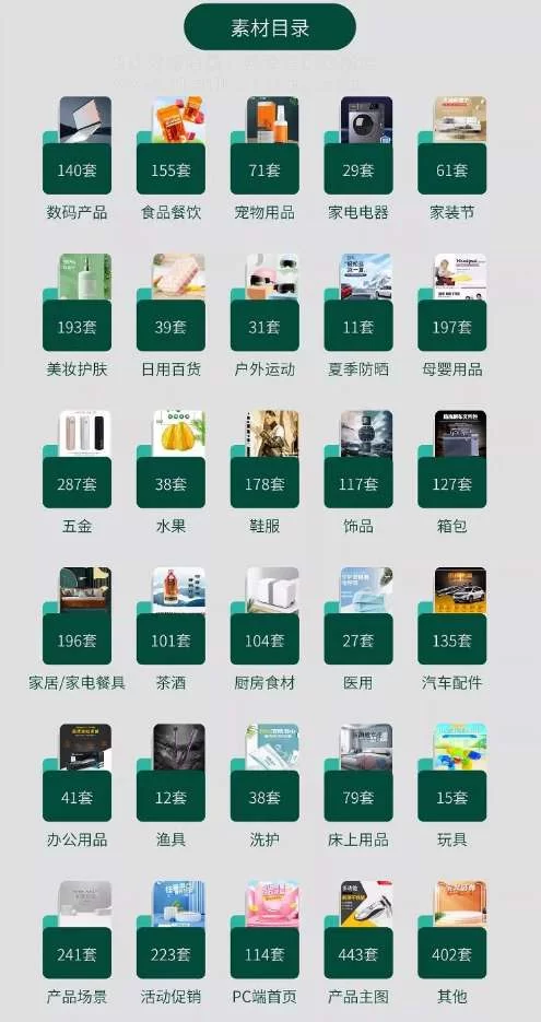 丰富多样的套装选择,涵盖了数码产品、食品餐饮、宠物用品、家电电器、美妆护肤、日用百货、户外运动、夏季防晒、母婴用品等领域,满足您不同产品类型的展示需求。