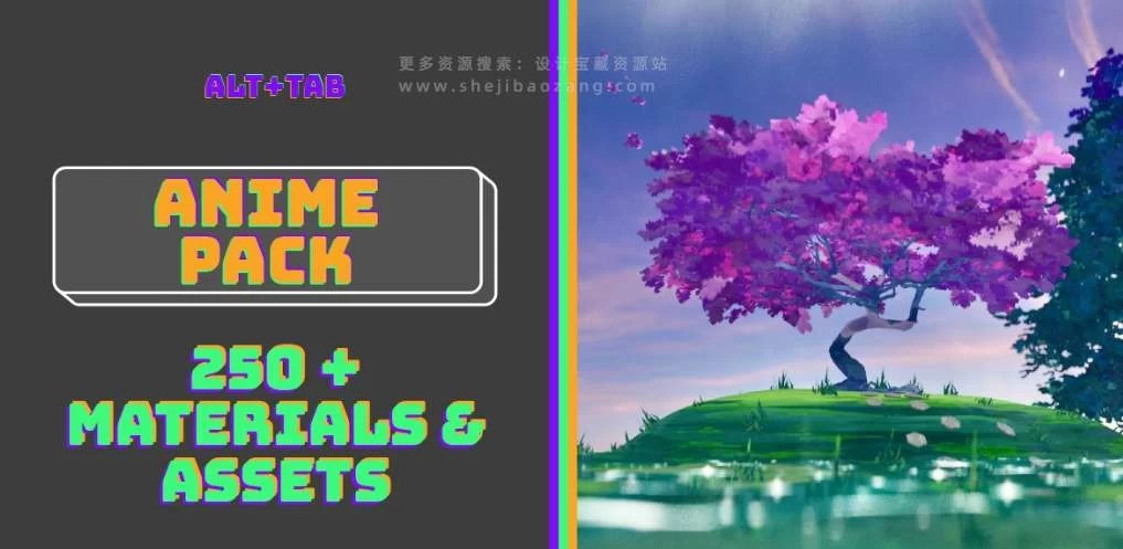 Blender预设Alt Tab – Procedural Anime Pack是一套包含250种动漫自然卡通着色器模型场景材质的预设,旨在帮助用户快速打造生动的动漫场景。该预设包含了46种材质和200多个模型和基础网格,可供您在任何场景中使用,涵盖了自然元素、室内元素和各种杂项物品,让您的场景更加丰富多彩,充满创意。