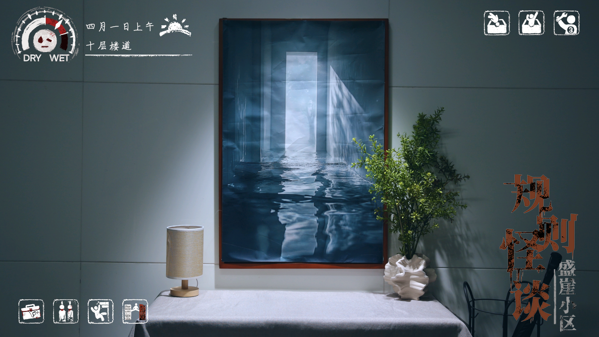 从你的家中离开后,你会踏足到小区内的公共区域。包括楼道、电梯、连廊、物业前台、档案室等地点。一般来说,作为业主出入这些地方理应都是安全的。但也请不要掉以轻心,那些熟悉的地方总会带来陌生的恐惧感,许你可以尽量去无视它们,如果你真的能做到的话……如果盛崖小区正处于潮湿期,那就请无视这段话吧。