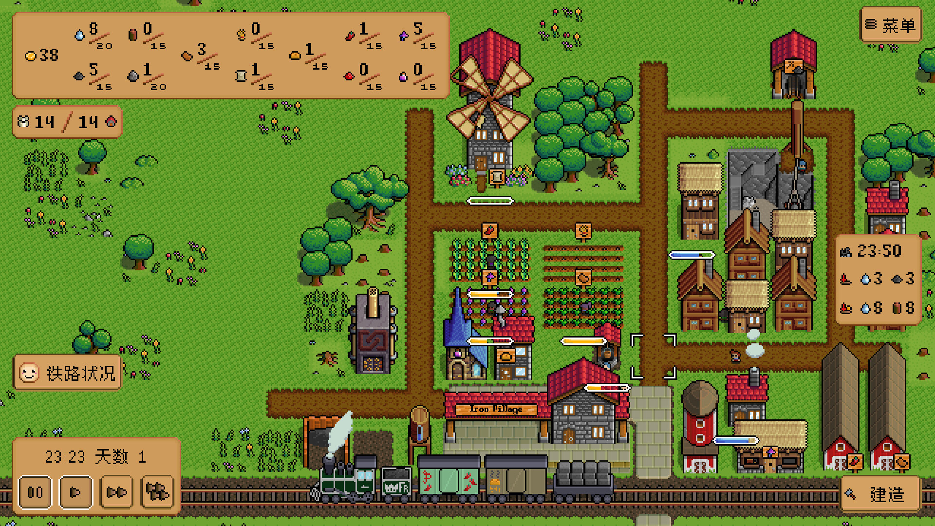 借助铁路之力,修建房屋、农场、仓库等建筑,铸就一方村落。用村民生产的物品换取其他资源与黄金,将村庄发展成繁荣的城镇,令铁路化作强盛之基。