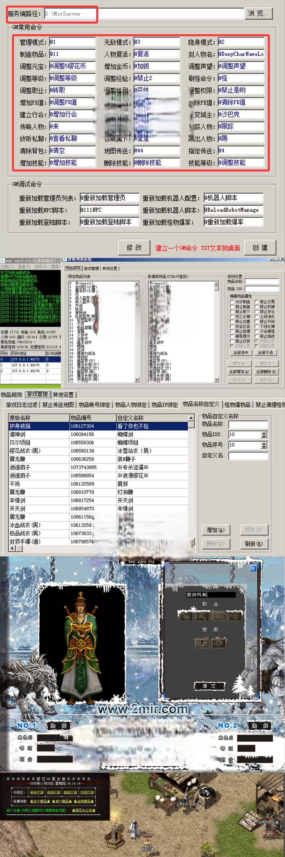 网单【传奇单机版】樱花传奇三职业复古版 GM后台 物品命令无限元宝可发物品装备 虚拟机一键端视频安装教学