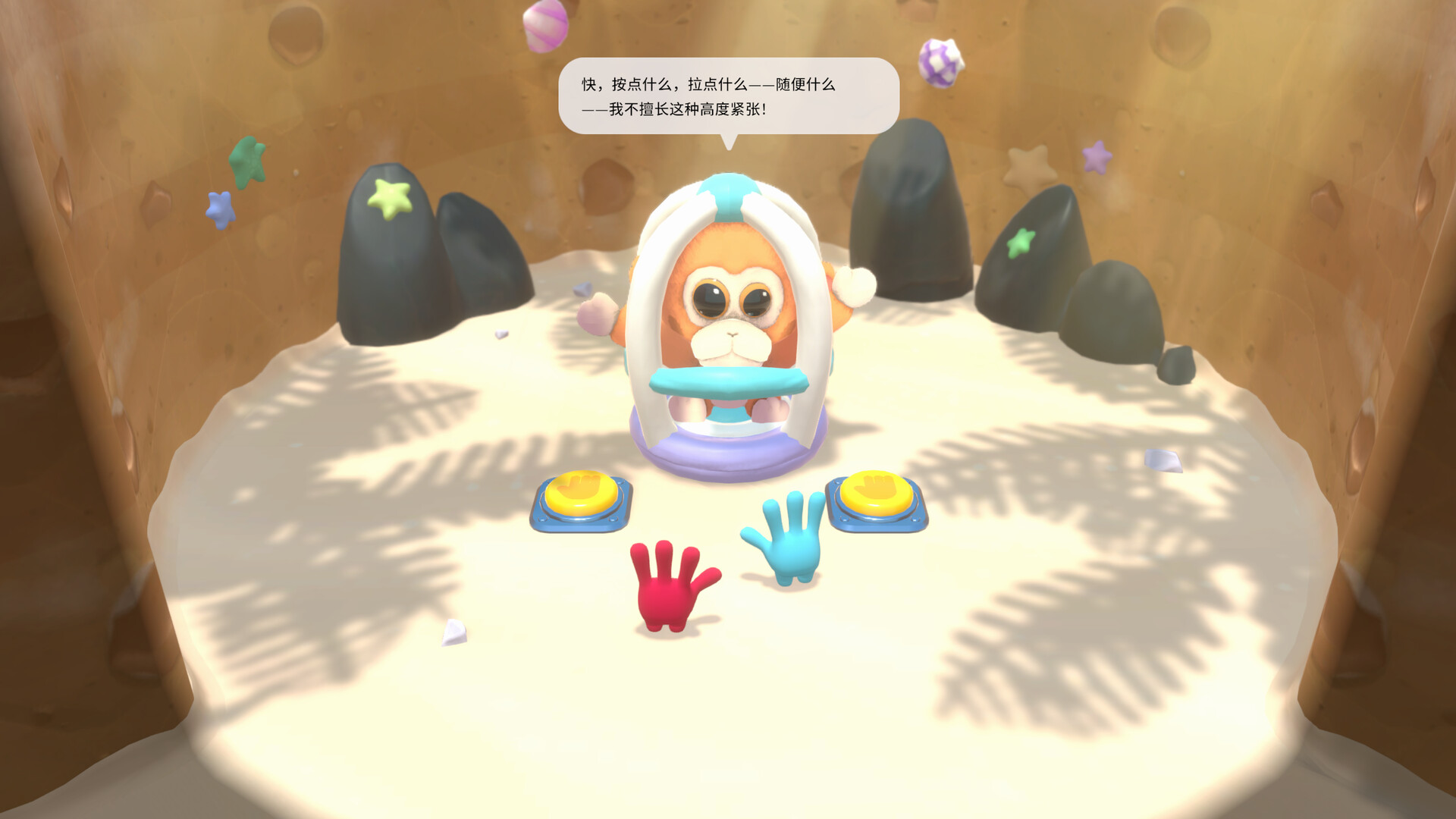 《左左和右右:手拉手!》是一款合作解謎平台遊戲。利用石頭、剪刀、布和各種道具一起解開謎題,探索趣味世界,拯救毛絨玩具。在遊戲中,大家都能享受相同體驗!只要交換道具就能輕鬆遊玩。是不是很方便呢!