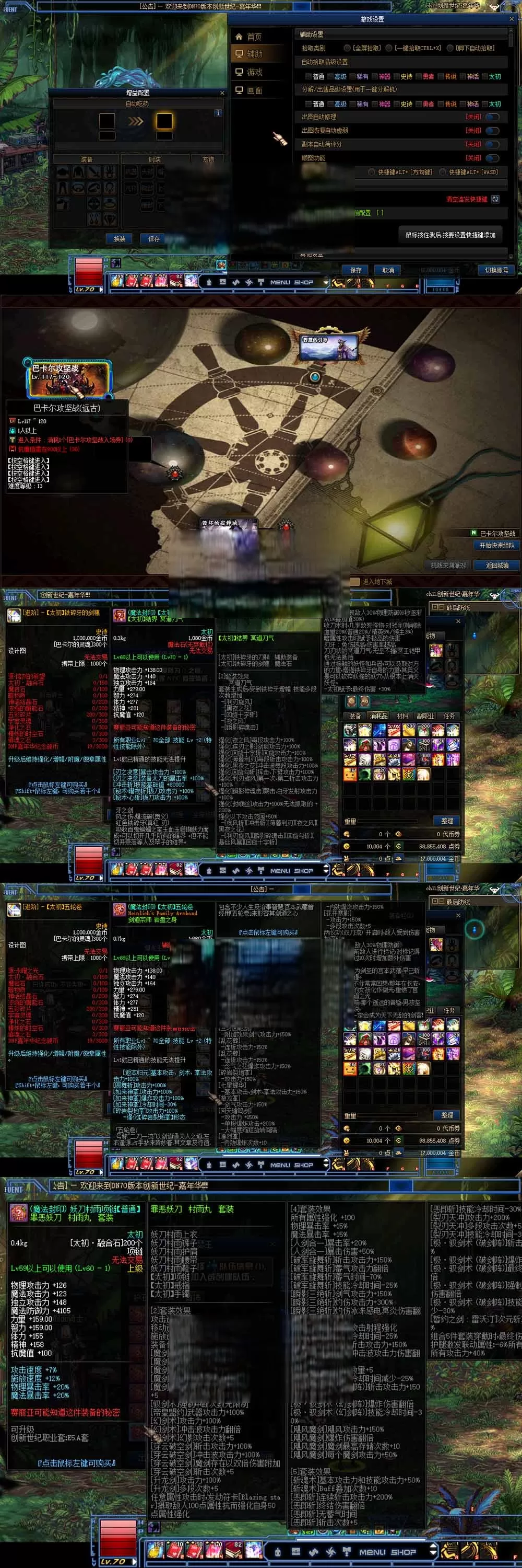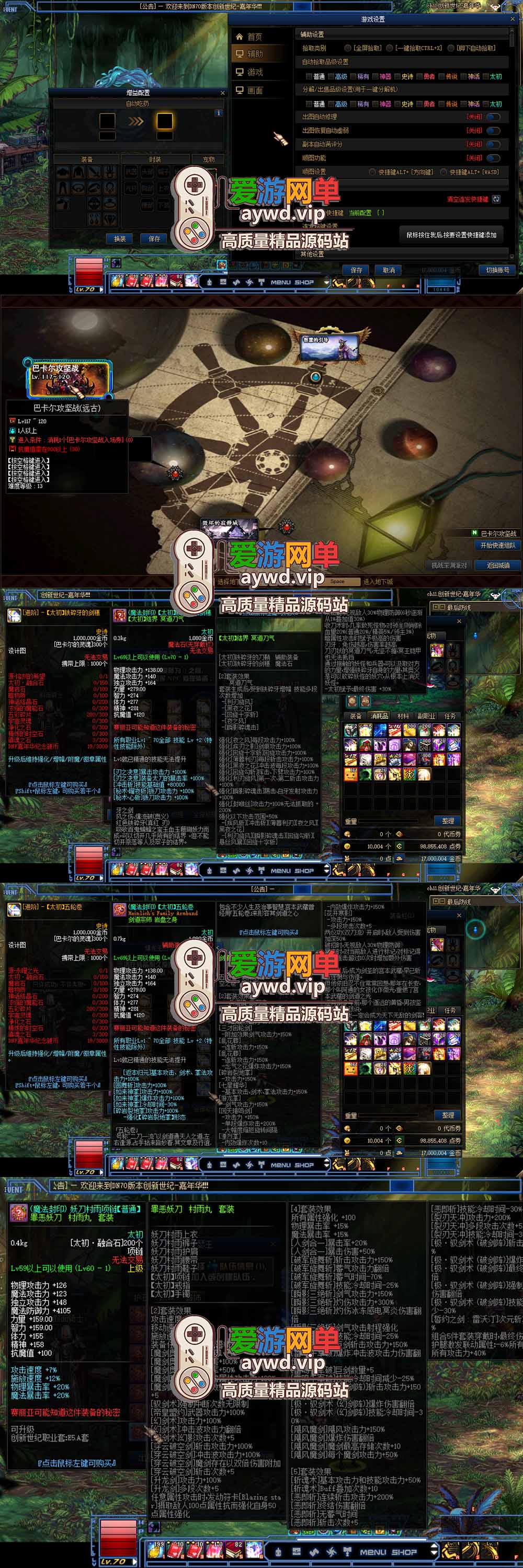 【DNF70单机版】微变创新世纪嘉年华 带女鬼剑 异次元技能徽章 护石 宝珠 神话装备 丰富皮肤装扮宠物 虚拟机一键端 视频安装教学