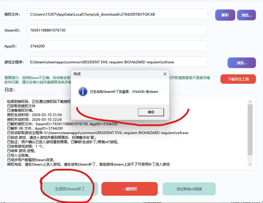 点击是了之后,再点击生成免steam补丁。