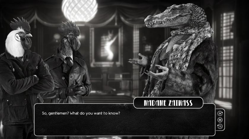 《公鸡神探》是一个黑色警察拍档冒险故事,有着精心打造的世界、粗犷的剧情和许多荒诞的幽默。这个游戏将经典冒险游戏的主要元素与视觉小说的叙事风格完美结合。