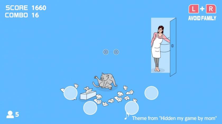 《在你身后! Behind You!!》是一款恶趣味搞笑新游。游戏的主旨是尽快的根据音乐来点击圆形,同时不能被经常开门的妈妈看见。游戏除了标题其它部分好像都是英文不过游戏本身的玩法也不难理解。