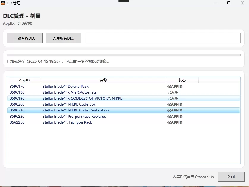 选中DLC管理,一键查找dlc 然后 入库所有dlc。