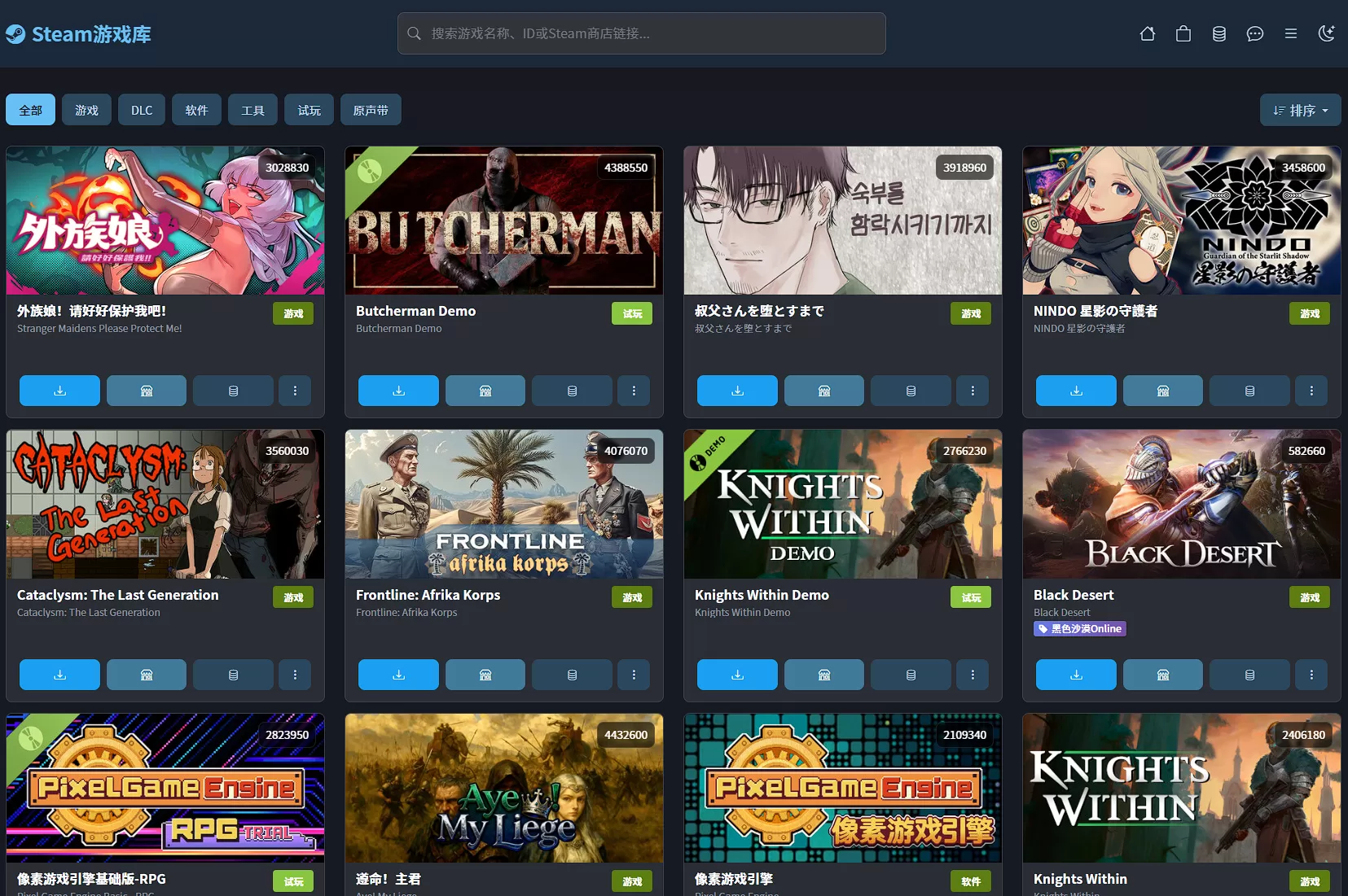 使用英文或者中文搜索你要查找的游戏,游戏封面那串数字就是appid。
